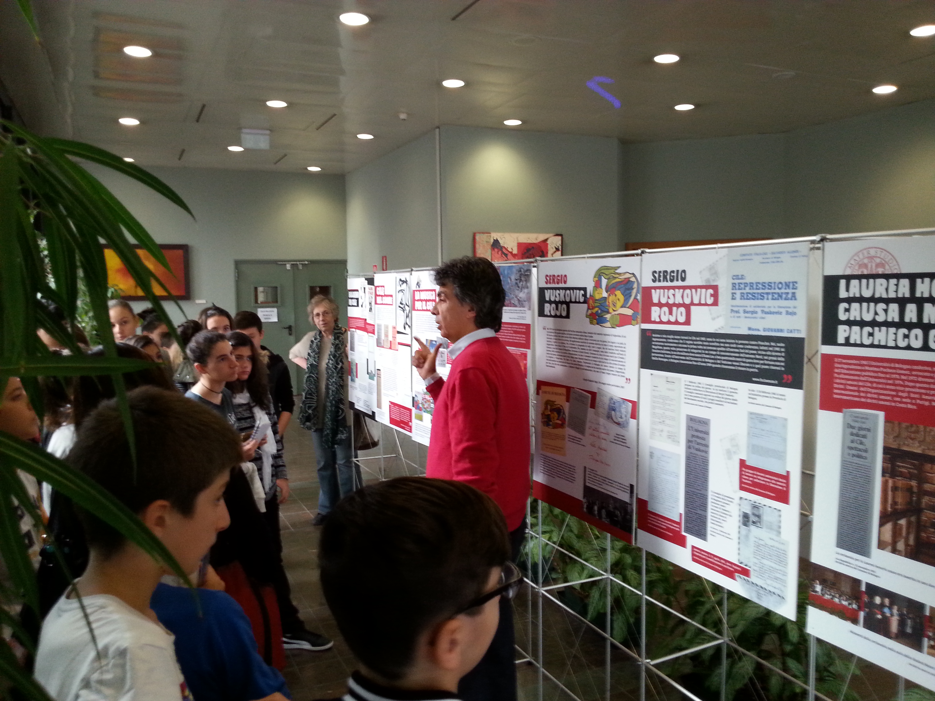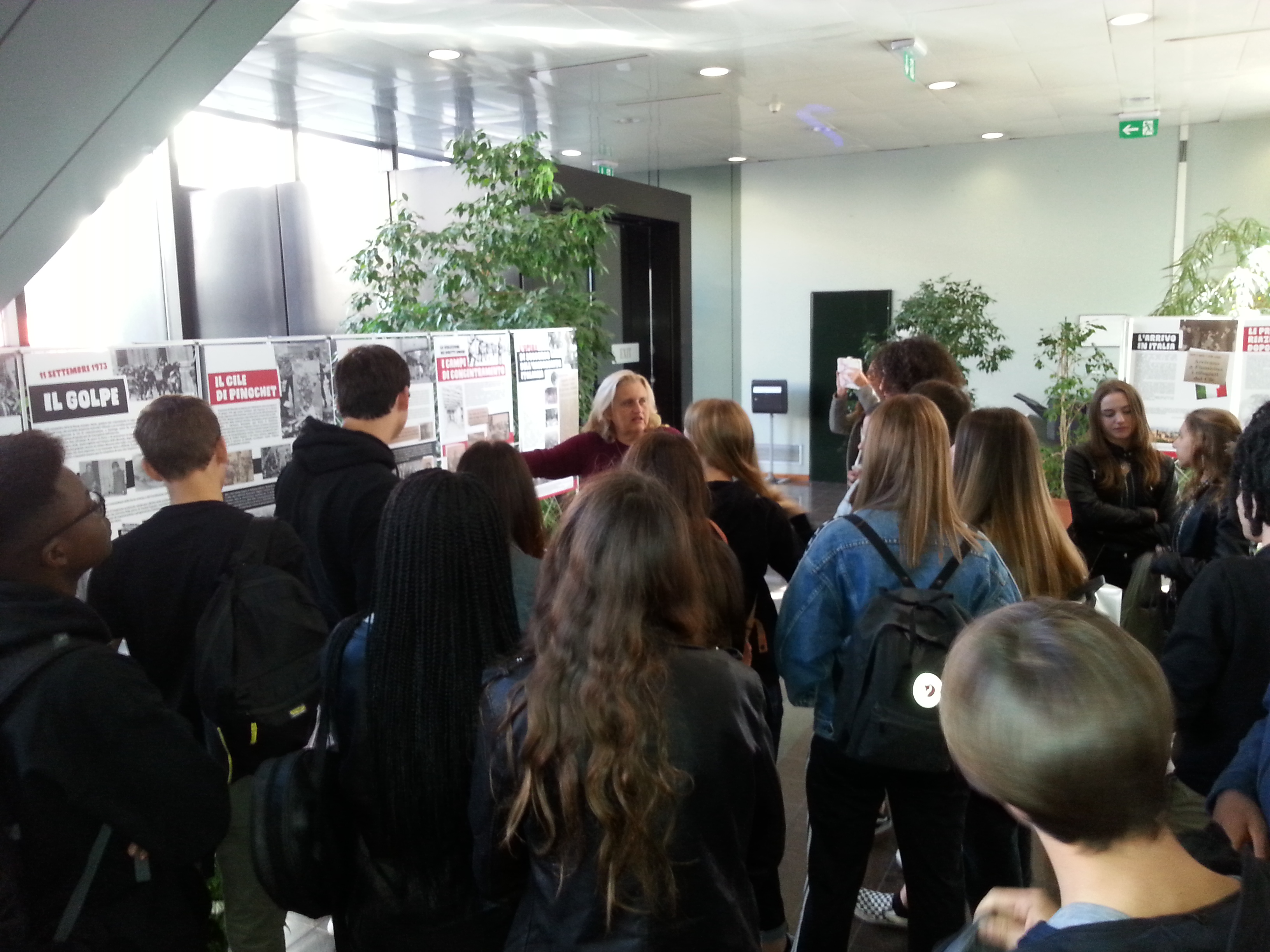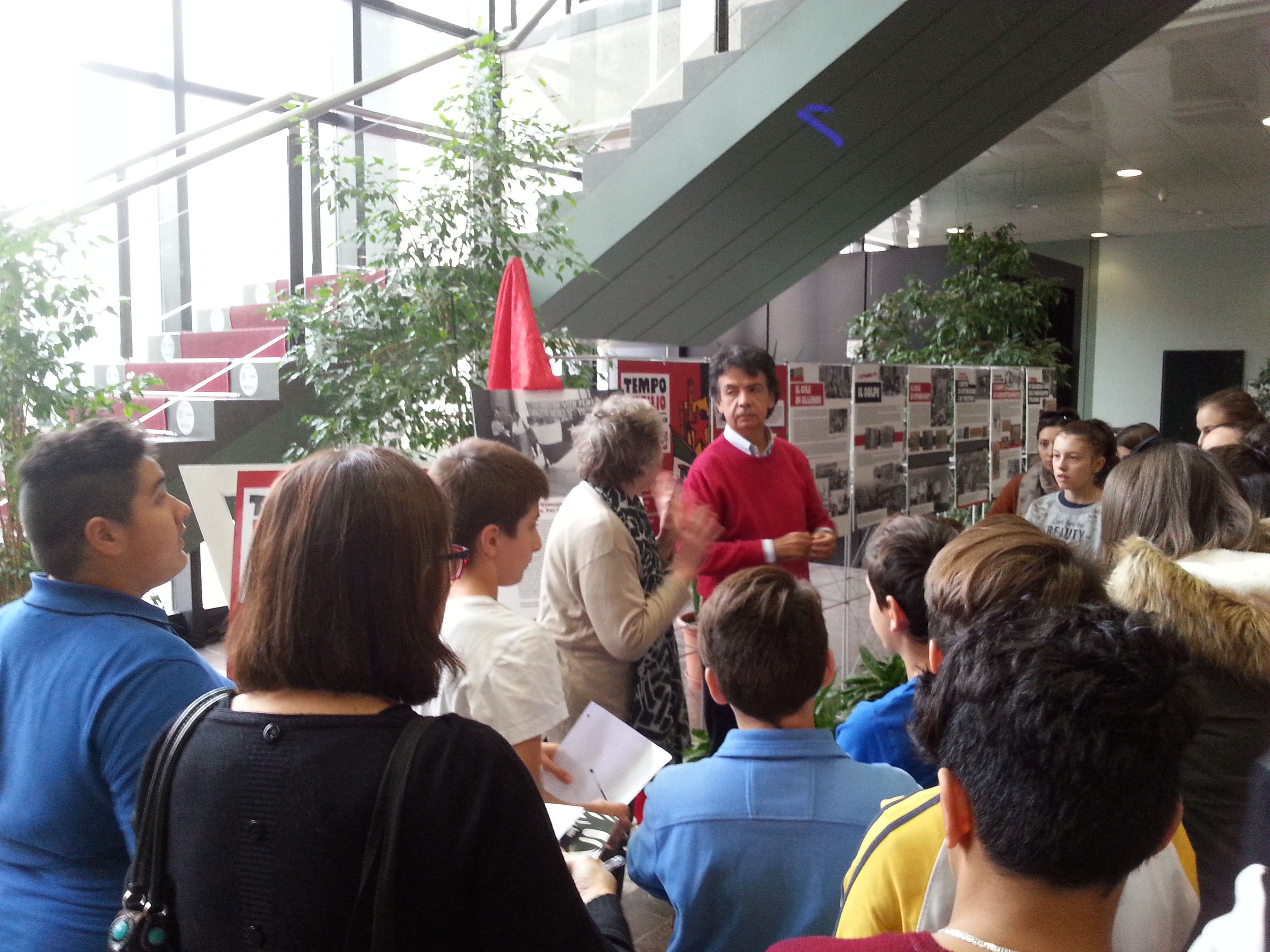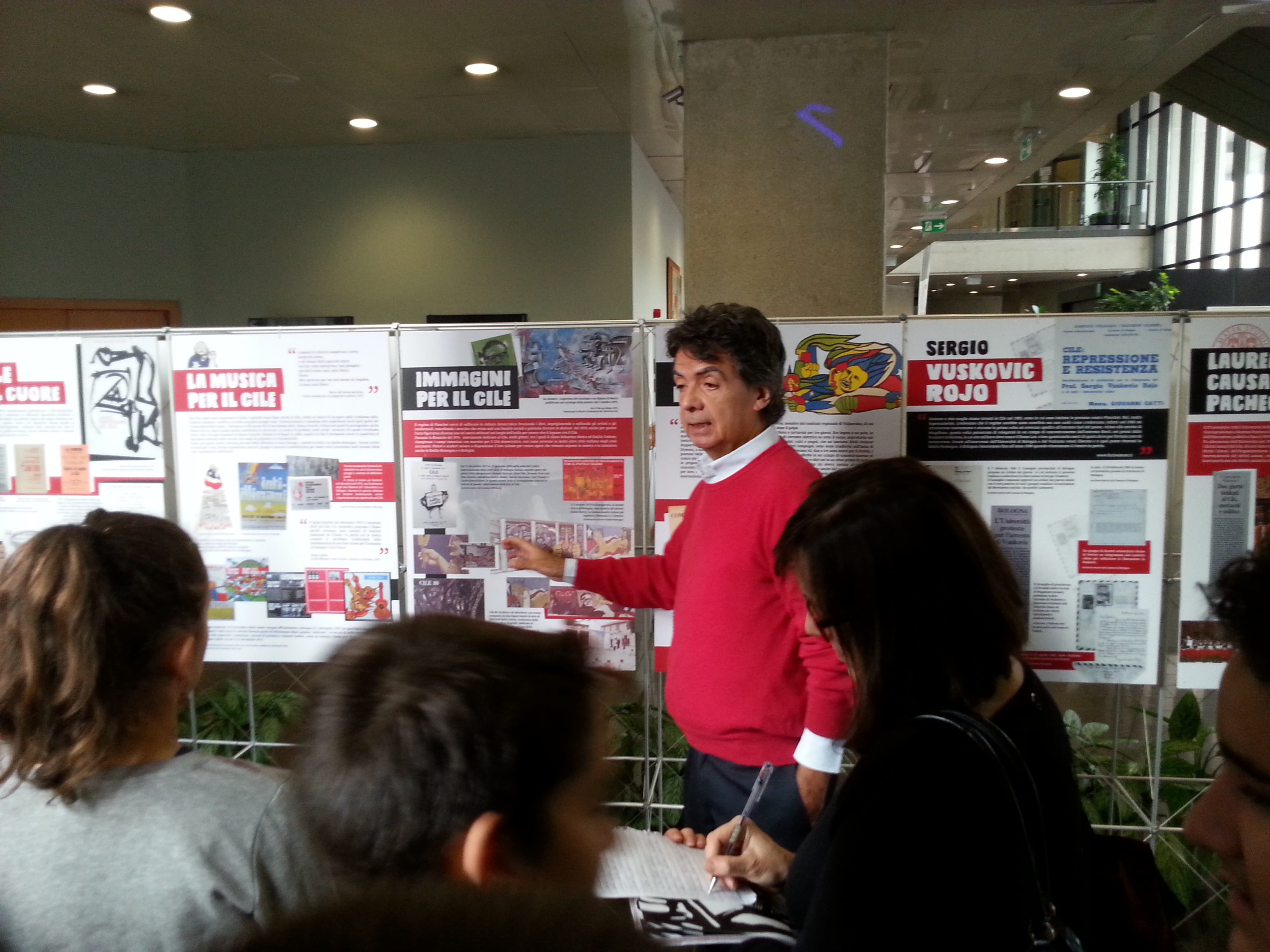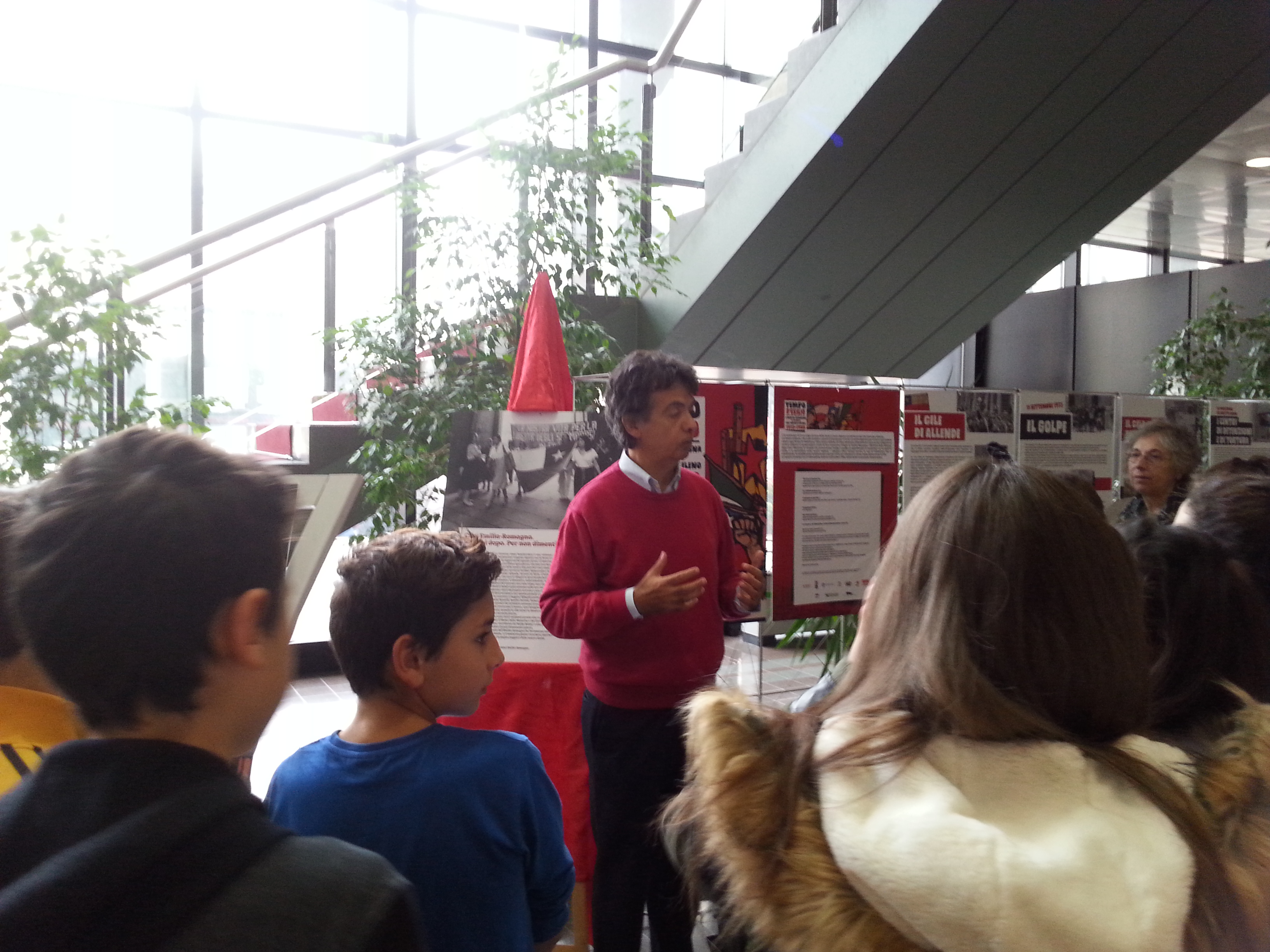 Il 27 ottobre 2017 una classe della Scuola Media Irnerio di Bologna, accompagnata dalla prof.ssa Laura Sartoni, ha fatto visita alla mostra "Tempo d'esilio", con una guida d'eccezione: Leonardo Barcelo, protagonista insieme a tanti cileni residenti in Emilia-Romagna di quanto narrato nella mostra.