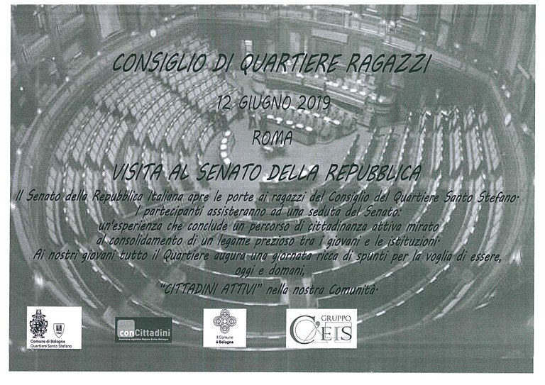 - nell'ambito dell'attivita' Consiglio di quartiere ragazzi resta in programma una visita al Senato della Repubblica in data 12 giugno 2019