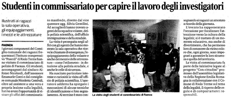 Il 22 marzo è stata effettuato un incontro al Commissariato di Faenza, di cui ha dato riscontro anche il Resto del Carlino Faenza.
