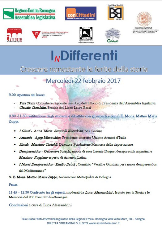 Crescere nonostante le ferite della Storia (pdf, 617.2 KB): presenti vari esperti con moderatore Luca Alessandrini dell'Istituto Parri di Bologna: 22 febbraio 2017 presso la sala Fanti dell'Assemblea legislativa