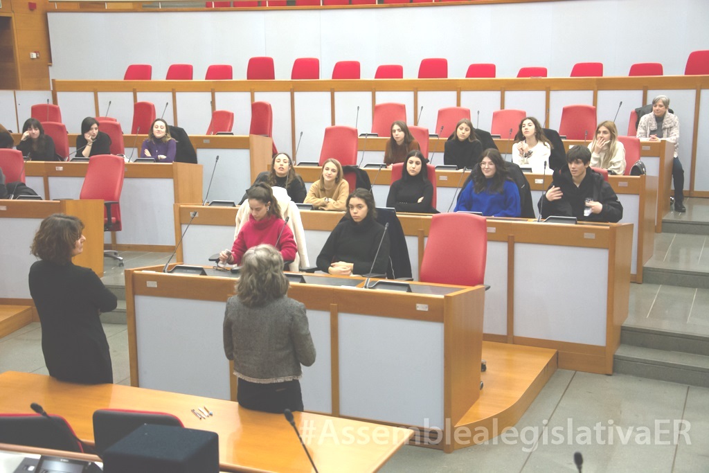 Venerdì 7 febbraio 2020, una delegazione di studenti del Liceo "Liceo “G. Cesare-M. Valgimigli” di Rimini, attivo in conCittadini con il progetto “Una colonia sopra il mare: storie e immaginazioni sulle colonie marine riminesi, ha portato in Assemblea legislativa il desiderio di conoscere il parlamento regionale della propria regione. Dopo un momento di ascolto, in cui hanno approfondito con Giuseppina Rositano il funzionamento e la geografia dell'Aula consiliare, le ragazze e i ragazzi hanno condiviso l’esperienza di Cittadinanza attiva sviluppata a scuola, con la Garante per l’Infanzia e Adolescenza Maria Clede Garavini, intrattenendo con lei uno scambio vivace.