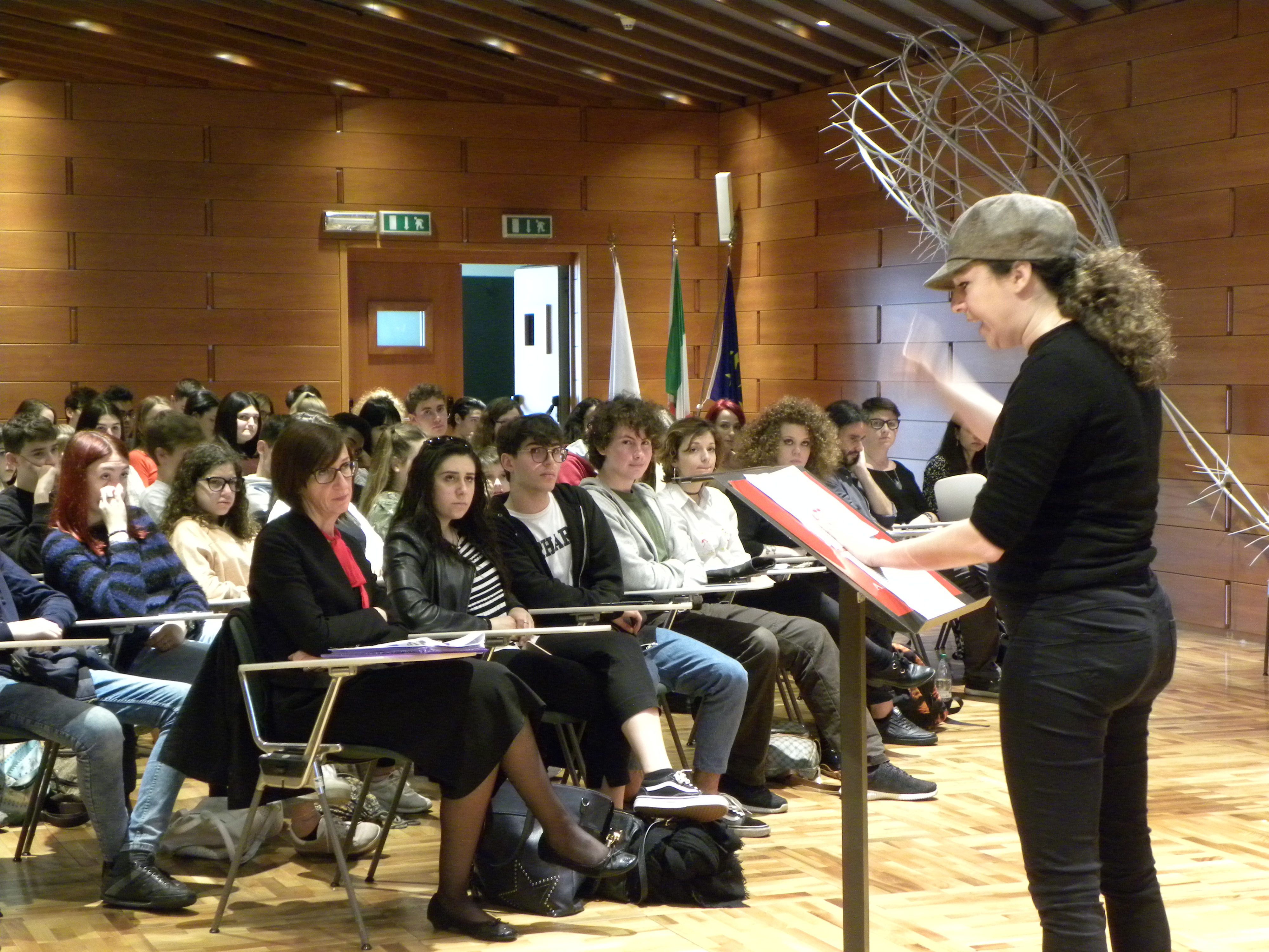 Giovedì 4 aprile il Liceo Laura Bassi, in conCittadini con un progetto dal titolo "La memoria del passato, la vigilanza sul presente (C. Delbo)" ha portato in Assemblea la mostra "Una Memoria, mille voci" sulla figura di Charlotte Delbo, partigiana francese di origine italiana deportata ad Auschwitz, autrice di un’opera poetica e teatrale di portata universale, ma ancora poco conosciuta in Italia. L'intensa mattinata ha previsto i saluti istituzionali del Dr. Luca Molinari in rappresentanza della Presidenza dell’Assemblea legislativa, del Prof. Thierry Guichard - Vicepreside del Liceo Laura Bassi e gli interventi della Prof.ssa Elisabetta Ruffini - ISREC Bergamo, curatrice della mostra “Una memoria, mille voci”, di Mons. Stefano Ottani - Vicario Generale della Diocesi di Bologna, di Geneviève Joseph - nipote di suor Leonie Duquet, desaparecida argentina. Tanti i momenti di scambio e di protagonismo degli studenti e delle studentesse delle classi quinte e quarte del Liceo Laura Bassi, con momenti musicali e letture di testi elaborati a partire dalla riflessione in classe. A conclusione dell'evento, una visita guidata alla mostra condotta dalla Prof.ssa Luchita Quario e dalle sue studentesse.