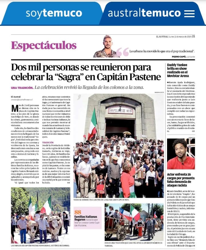 Articolo di giornale Capitan Pastene