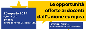 ![]() | Progetto JeanMonnet, il 28 agosto 2019 un corso per docenti a Bolognauna Summer school di una giornata per prepararsi al nuovo anno scolastico, cogliendo tutte le opportunità offerte ai docenti dall'Unione europea. La giornata informativa fa parte di un progetto Jean Monnet del Campus di Forlì dell'Università di Bologna. Sono partner del progetto l'Assemblea legislativa con il suo Europe Direct e UNISER società cooperativa onlus. Iscrizioni online:https://forms.gle/Au1P8KZkPa8eyCgg8