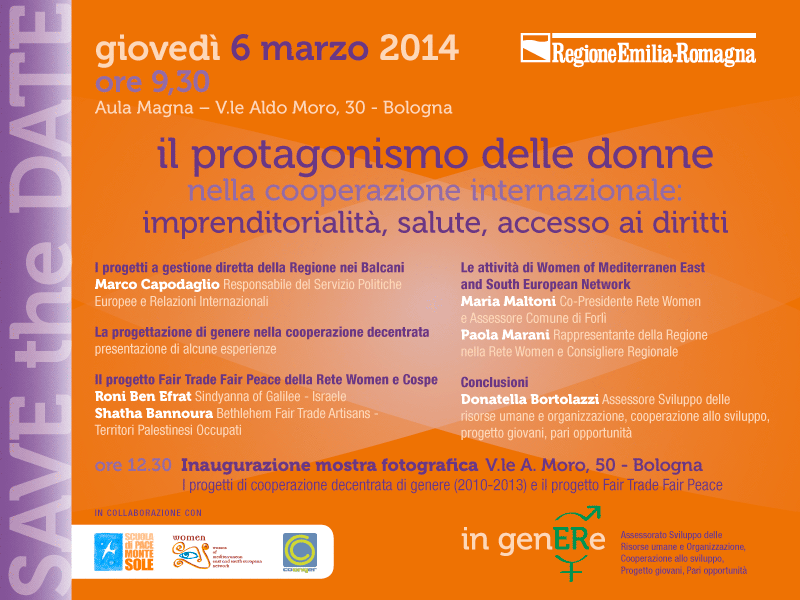 Giovedì 6 Marzo, presso la Regione Emilia-Romagna, si discuterà dei progetti di genere della Regione nella cooperazione internazionale.